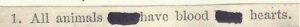 My blood-–now thick, dark. Not bright but fluid. Soaking. Pooling. My blood pools this morning. Last night my legs were striped with bruise. Blood pools under my skin. My blood cannot carry iron. I cannot carry oxygen. This blood, all washed and washing down my legs—another failure to carry. My carriage fails. I flail in the loss of my carriage. I flail and flog. Starved for oxygen. Take my meaty ventricles and shove them back in. Pushed into a shape. Formed. What cannot be formed inside me, spools down my legs. My animal heart beats. My animal carriage carries my loss. <3